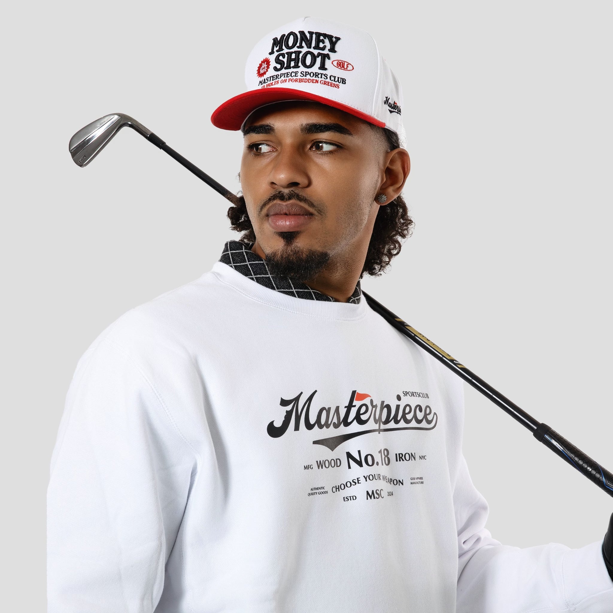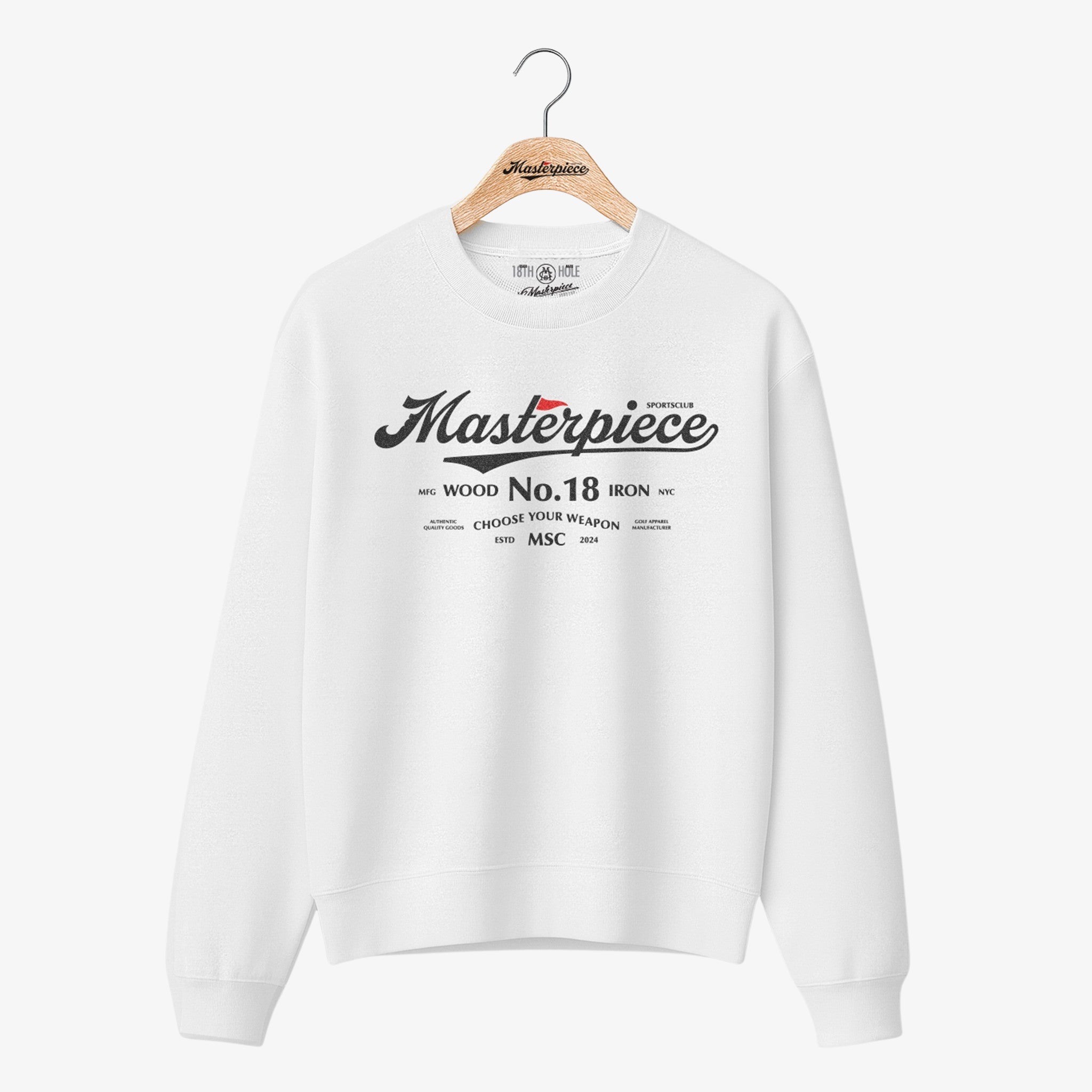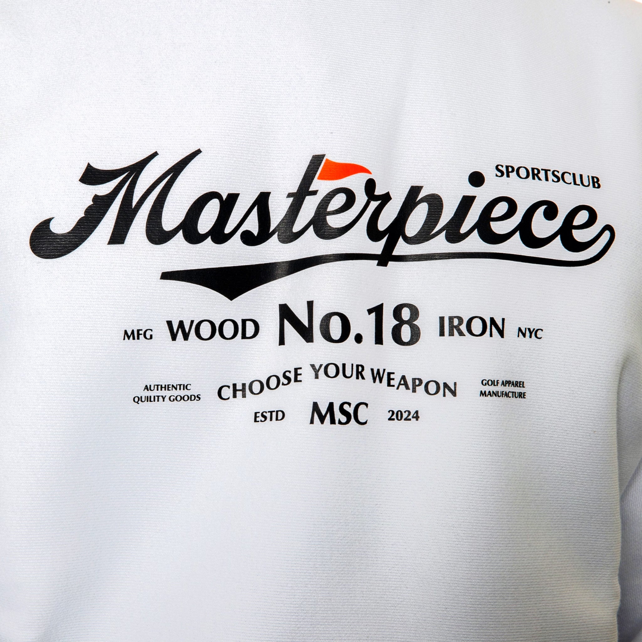 Features Masterpiece No. 18 logo graphic on the front with MSC icon on the back neck